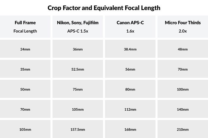 But when you use a lens with an APS-C or Micro Four Thirds camera, the crop factor changes the effective focal length. The new focal length is called the equivalent focal length.
