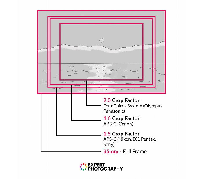 These crop factor values are important as they allow us to work out the equivalent focal length. This will tell you the field of view you can expect from your lens and crop-sensor camera.